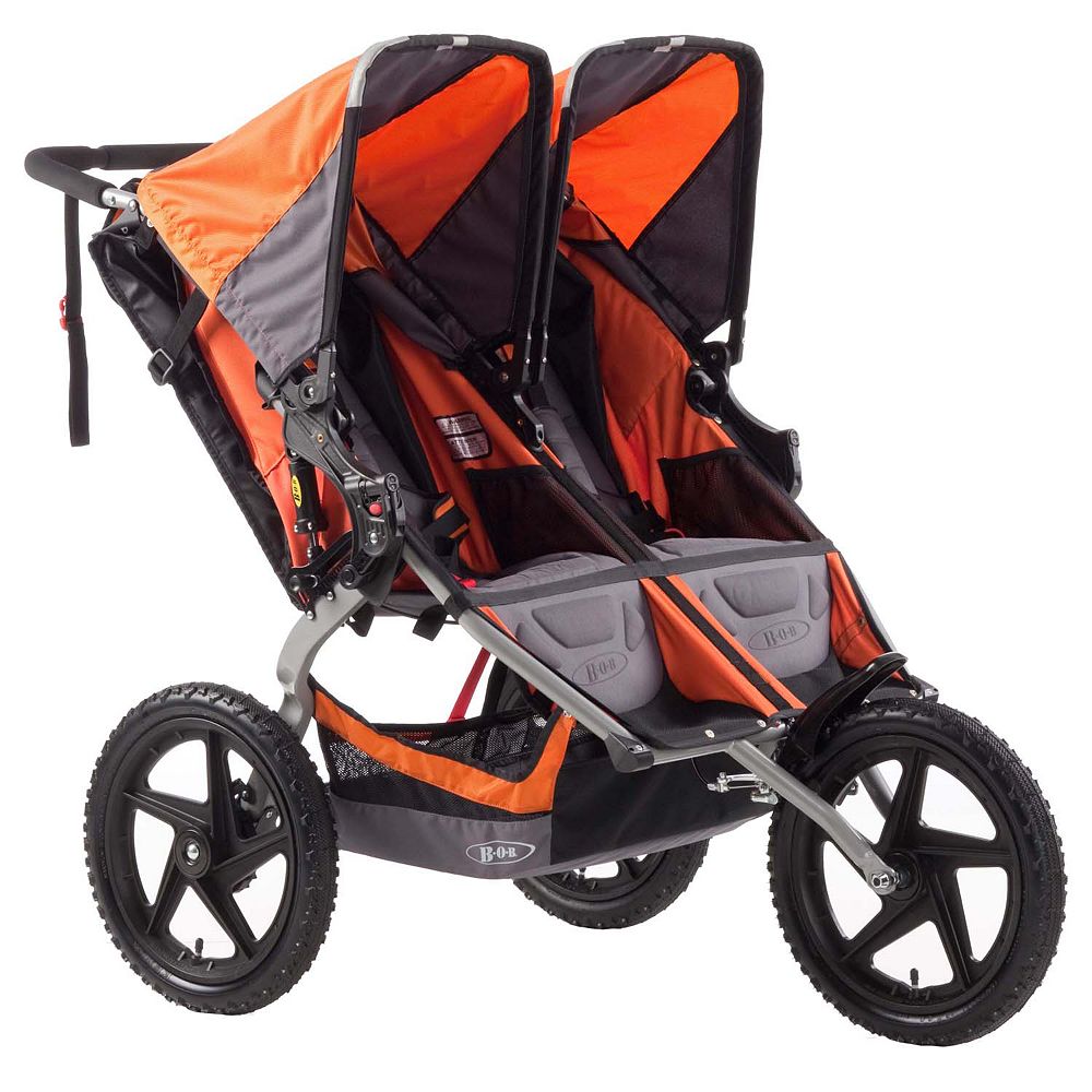 This BOB double stroller's fixed front wheel provides increased stability for hiking, jogging or when the trail gets rough, so your little one can join you on every adventure. In orange.
