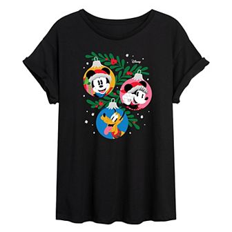 (281)Disney's Mickey Mouse Juniors' Christmas Oversized Tee