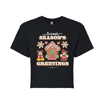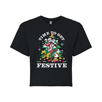 Disney's Mickey Mouse Juniors' Christmas Silhouette Cropped Tee