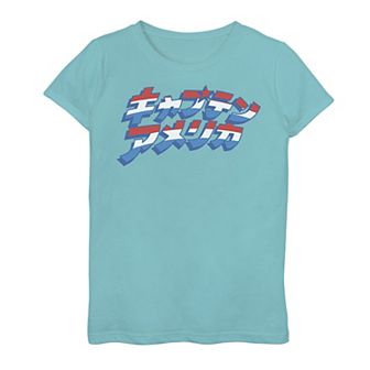 Girls 7-16 Marvel Captain America Kanji Text Logo Graphic Tee
