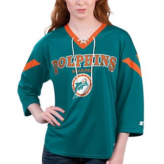 Women's Starter Aqua Miami Dolphins Rally Lace-Up 3/4 Sleeve T-Shirt