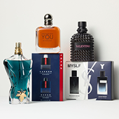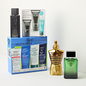 Assorted cologne and soap products pictured.