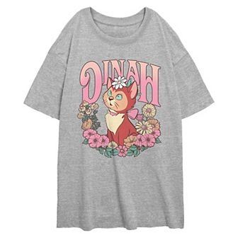 Disney's Alice In Wonderland Dinah Floral Wreath Juniors' Oversized Graphic Tee