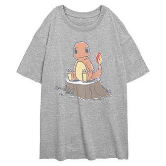 Juniors' Pokemon Charmander Resting On Stump Oversized Graphic Tee