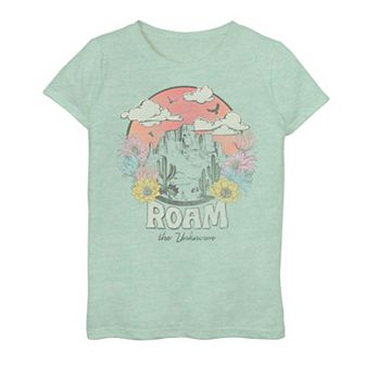 Girls 7-16 Roam The Unknown Desert Landscape Flowers Graphic Tee