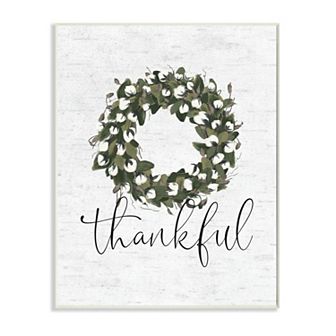 Stupell Home Decor Cotton Flower Country Style Wreath with Thankful Text Wall Art