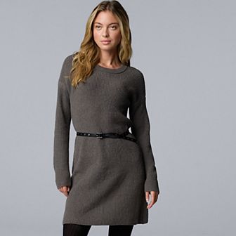 Women's Simply Vera Vera Wang Belted Crewneck Sweater Dress