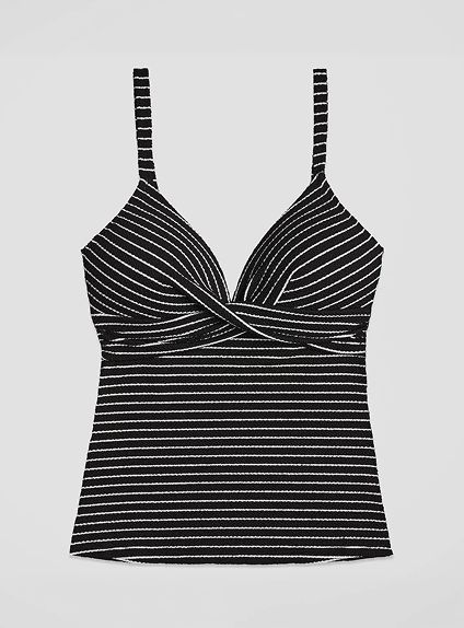 This suit has an attached, flared skirt that flatters and adds shape to your hips and backside. | Tankinis offer more coverage, falling just below the belly button. They have the look of a one-piece with the ease and versatility of a two-piece. | Swim Shorts offer more fabric and a tight fit for full coverage while hugging your curves. | Tummy control panels offer firm, yet flexible support that narrows your figure and creates a flattering look. |