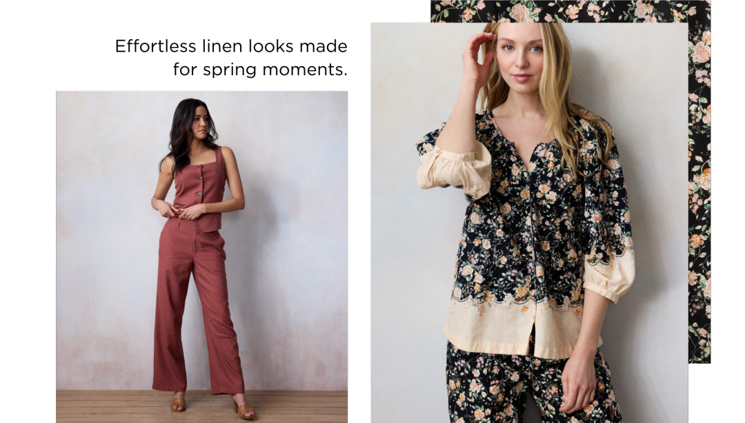 Say hello to spring—and the latest collections from LC Lauren Conrad! Embrace your romantic side in vintage florals and dreamy colors. Discover a soft, feminine take on the utility trend with delicate lace and crochet details. Make getting dressed a breeze in elevated matching sets and find fresh jeans hand-picked just for you. Designed to welcome the sunshine and warmer days, these pieces are sure to become favorites for whatever the season has in store.