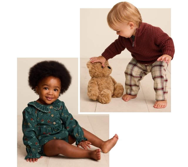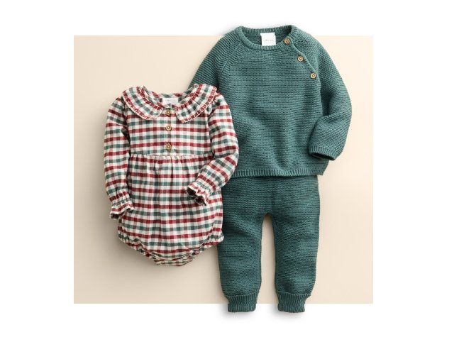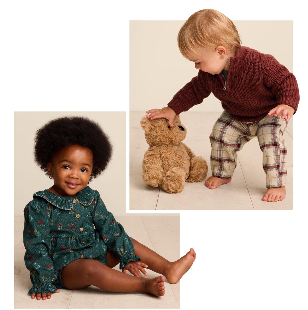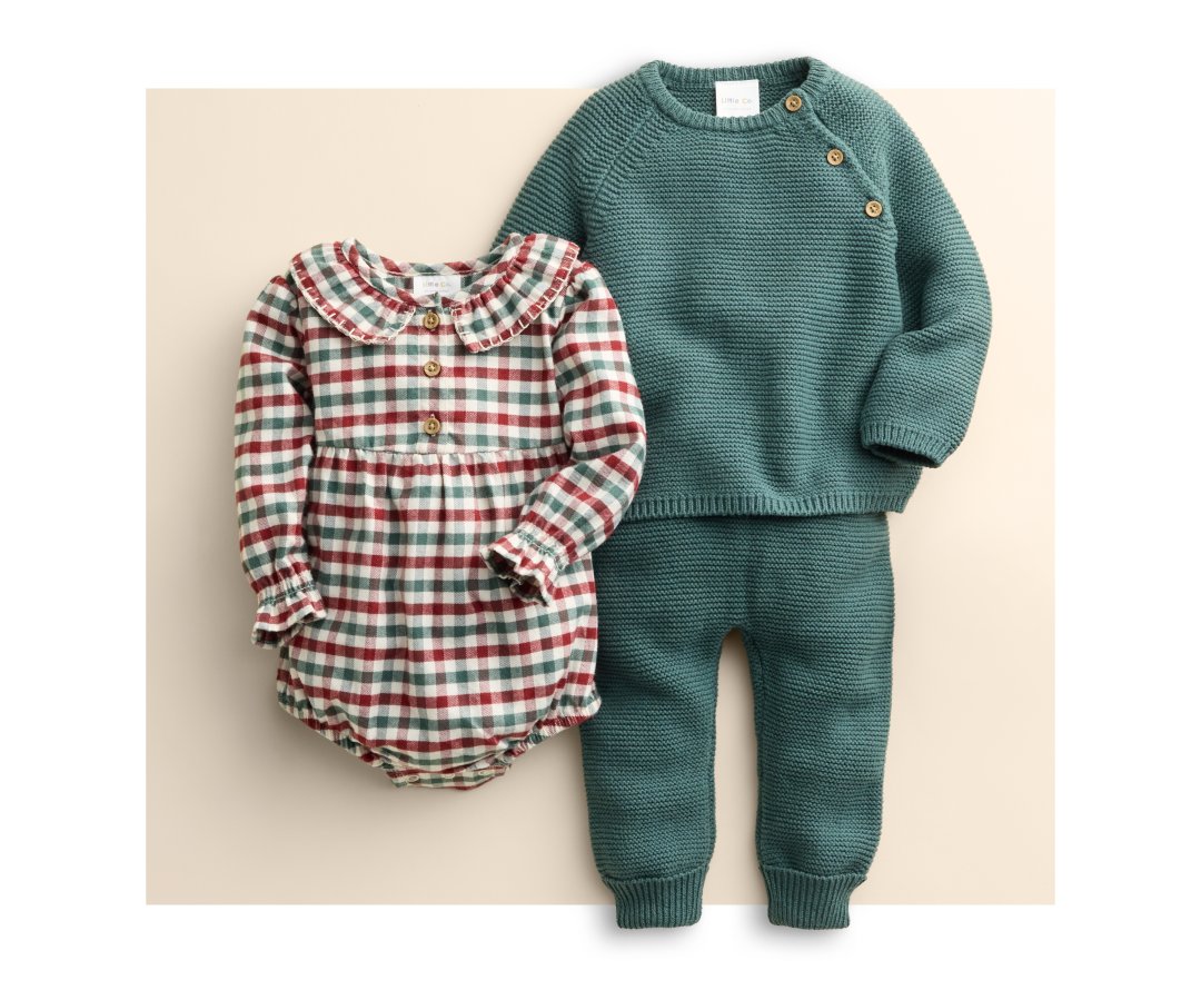 From playful plaid to snuggly knits, find the perfect look for baby’s first holiday.