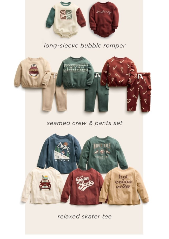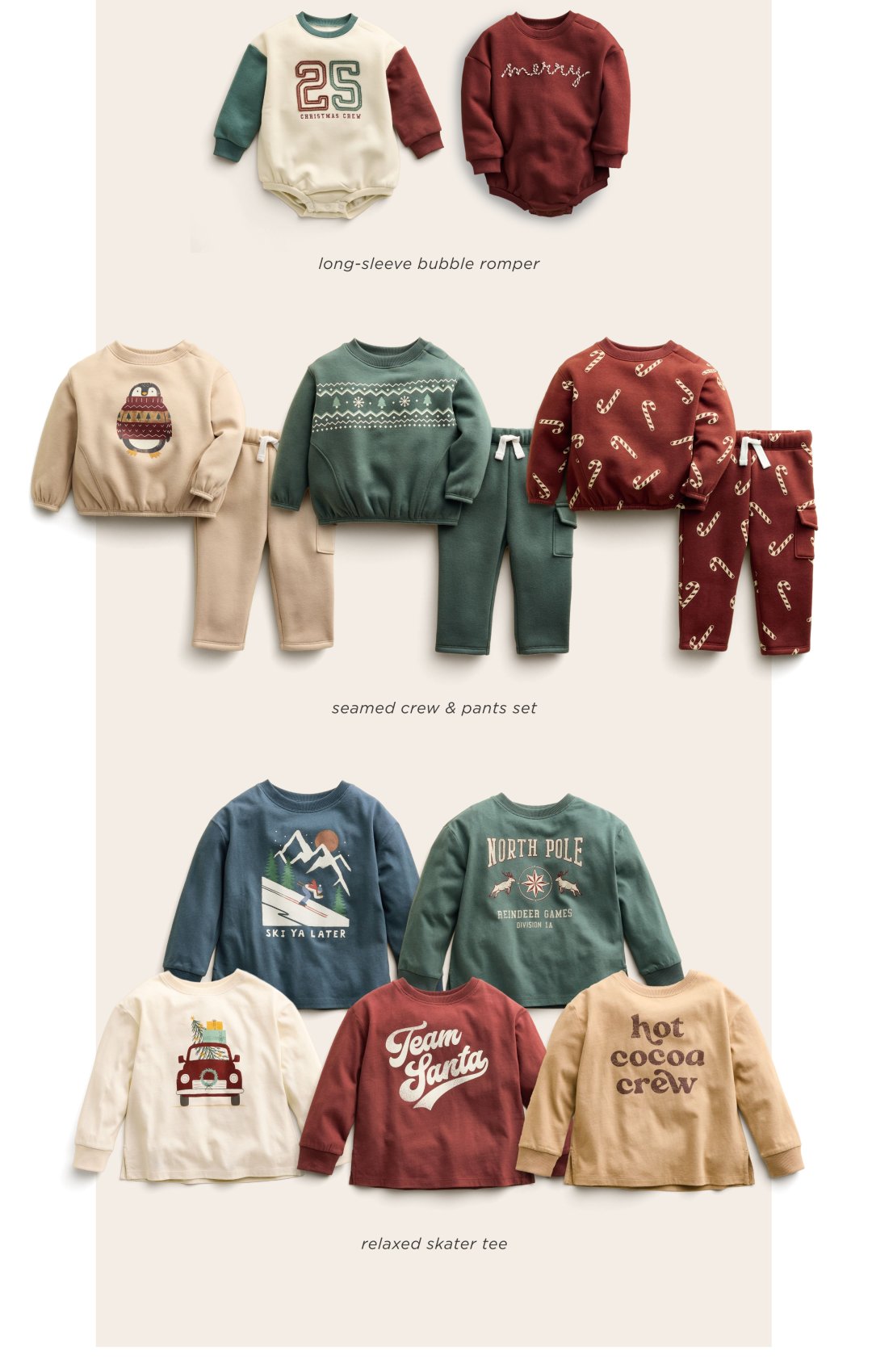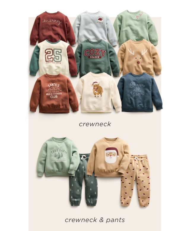Your favorite crewnecks and sets … now with a little holiday spirit.