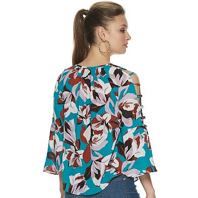 Juniors Womens JENNIFER LOPEZ BAR SLEEVE PEASANT TOP