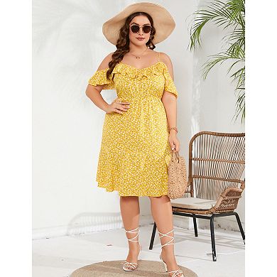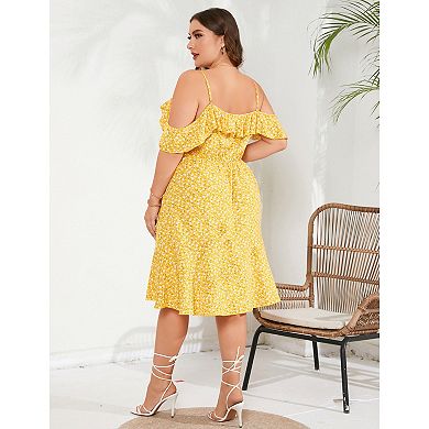 This summer midi dress features spaghetti straps, midi length, smocked design, A-line silhouette, V neck, stretchy elastic high waist, casual boho style, tiered, and a long flowy ruffle sundress.