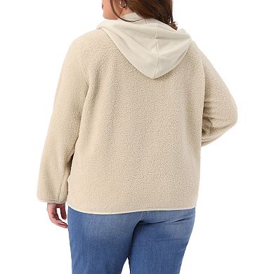 Plus Size Hooded Fleece Jacket for Women Button Down Teddy Fluffy Outerwear Coats with Pockets