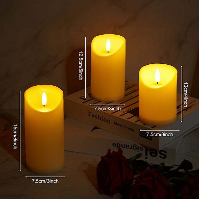 3 Pcs Rechargeable Pillar Candles Flickering Flameless Candles with Remote Timer