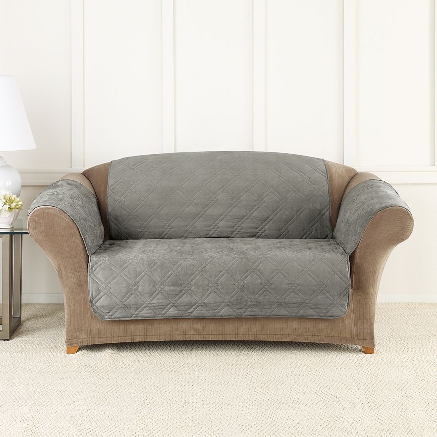 Keep pet hair off your furniture with this Sure Fit microfiber non-skid pet loveseat cover.