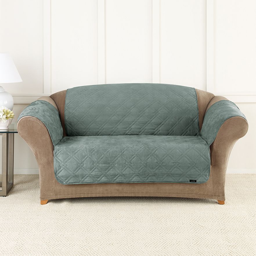 Keep pet hair off your furniture with this Sure Fit microfiber non-skid pet loveseat cover.