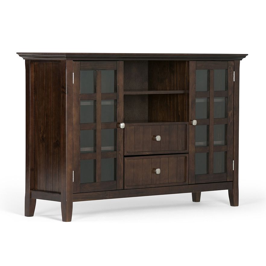 Bring your decor up-to-date with this Simpli Home Acadian TV stand. In brown.