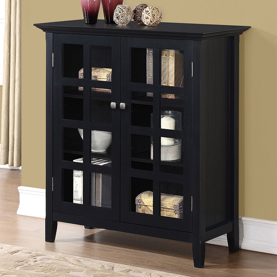Store your mementos in this sleek Simpli Home Acadian medium storage cabinet.