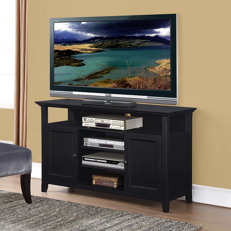 Create a sleek entertainment center with this Simpli Home Amherst tall TV stand.