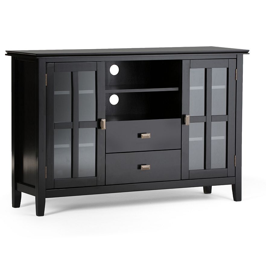 Set up an entertainment center in your living room with this Simpli Home Artisan tall TV stand.