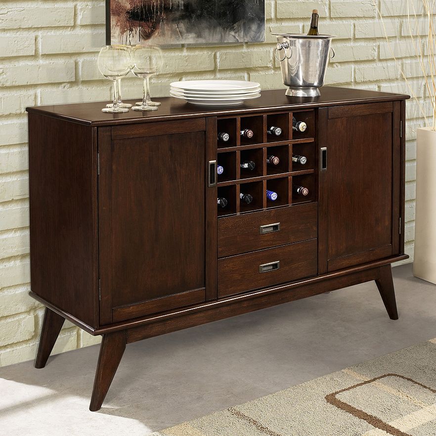 Be the ultimate host with this convenient Simpli Home Draper mid-century sideboard buffet table & wine rack.