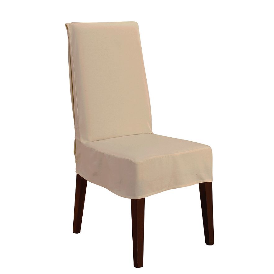 • These chair covers just made it easier to dress up your dining room, mix & match in your living room- or even transform your kitchen with these beautiful Long Dining Chair Covers. Ultra-versatile Cotton Duck collection creates a clean foundation that compliments any decorating style. Loop the ties for a casual look or make a bow to achieve a dressier style.