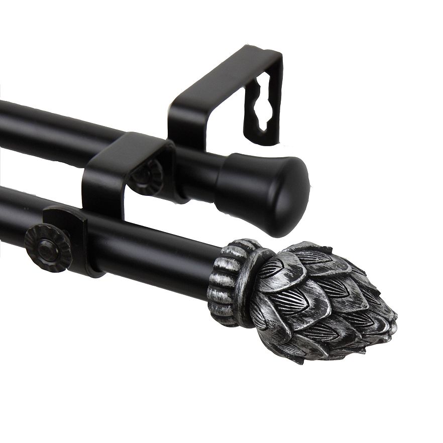 Featuring a distressed finish, this Rod Desyne double curtain rod adds classic style to any decor. In black.