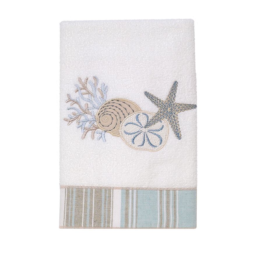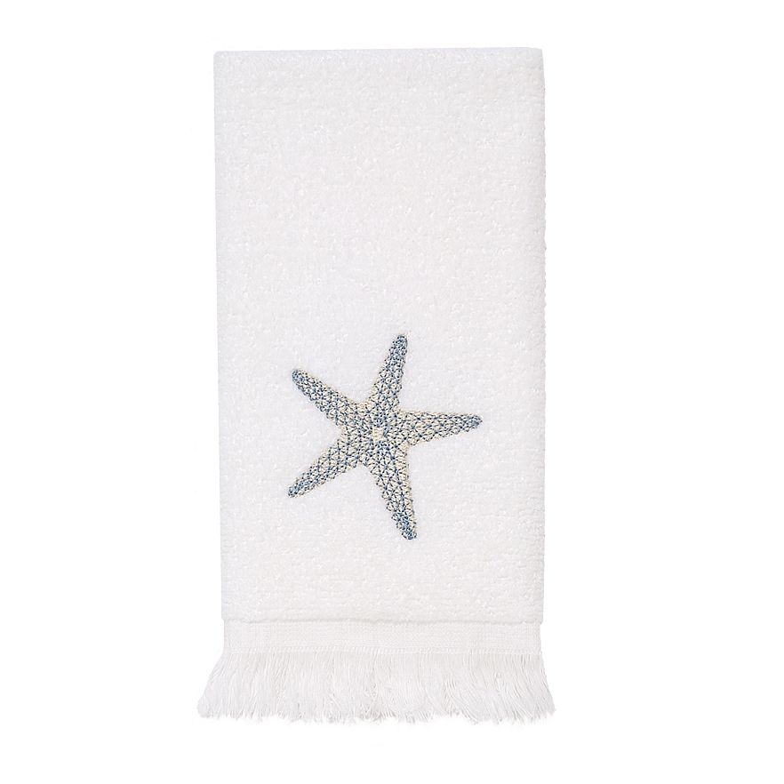 This Avanti fingertip towel adds a coastal feel to your bathroom decor. In white.