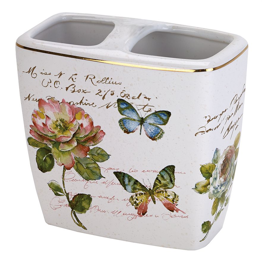 Add a lovely new look to your bathroom with this Avanti Butterfly Garden toothbrush holder.