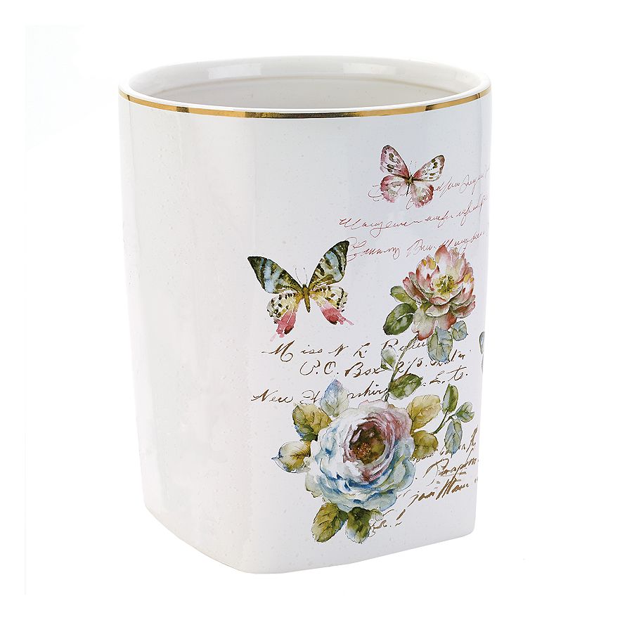 Add a lovely new look to your bathroom with this Avanti Butterfly Garden wastebasket.