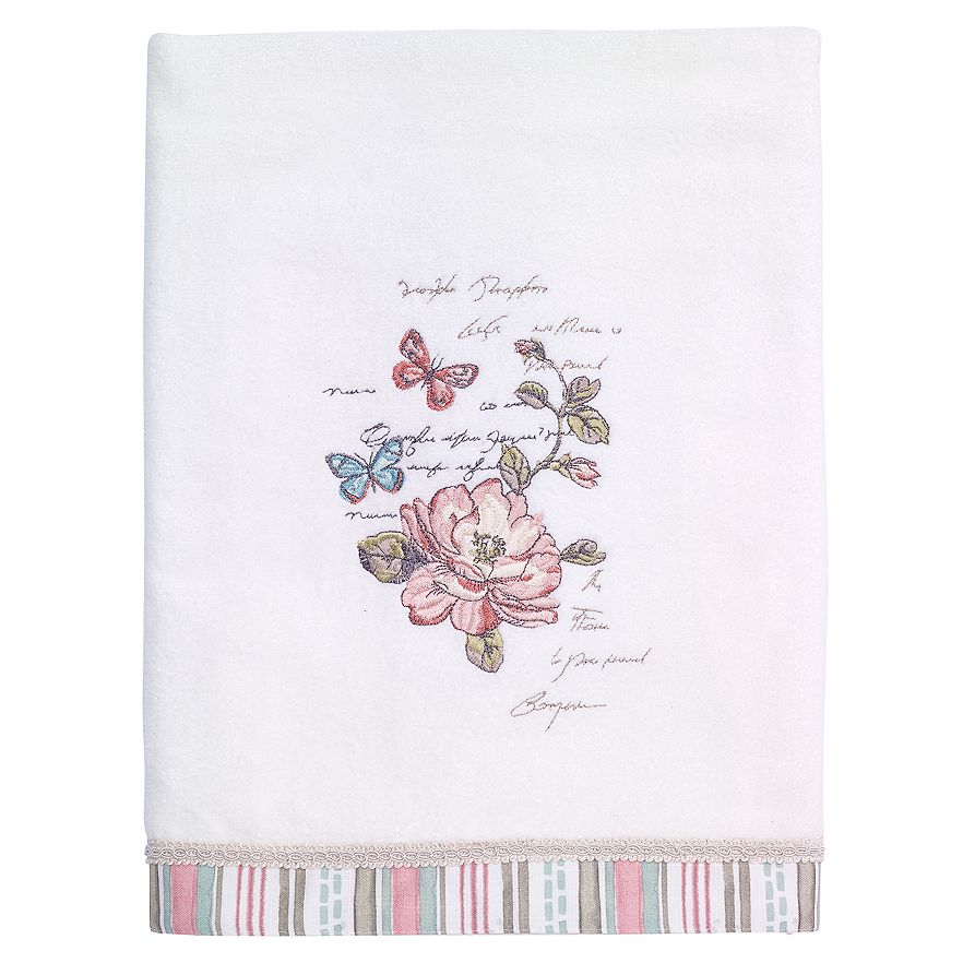 Add sweet summertime style your bathroom with this Avanti Butterfly Garden bath towel. In white.