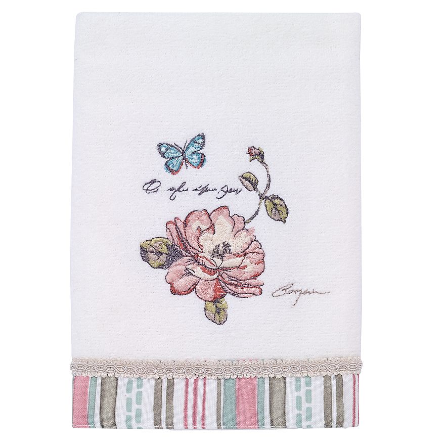 Add sweet summertime style to your bathroom with this Avanti Butterfly Garden fingertip towel. In white.