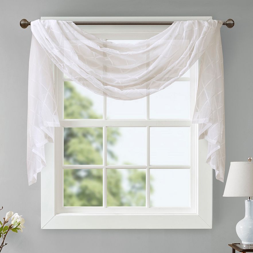 Add sheer style to your living room or bedroom with this Madison Park Iris diamond sheer window valance scarf.