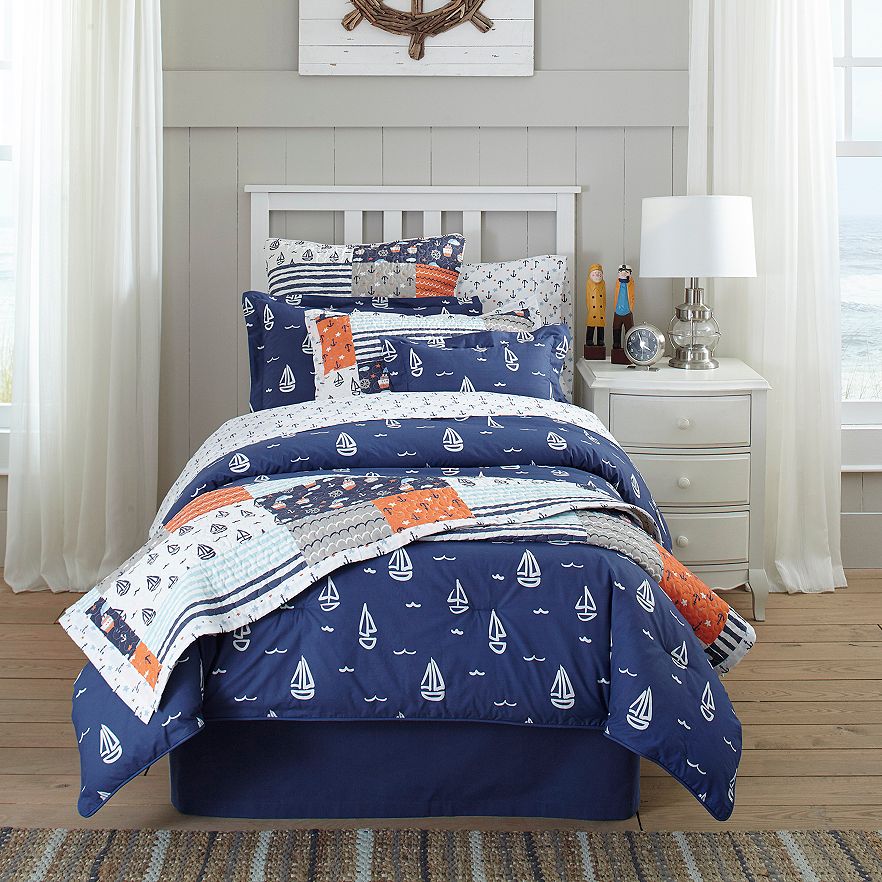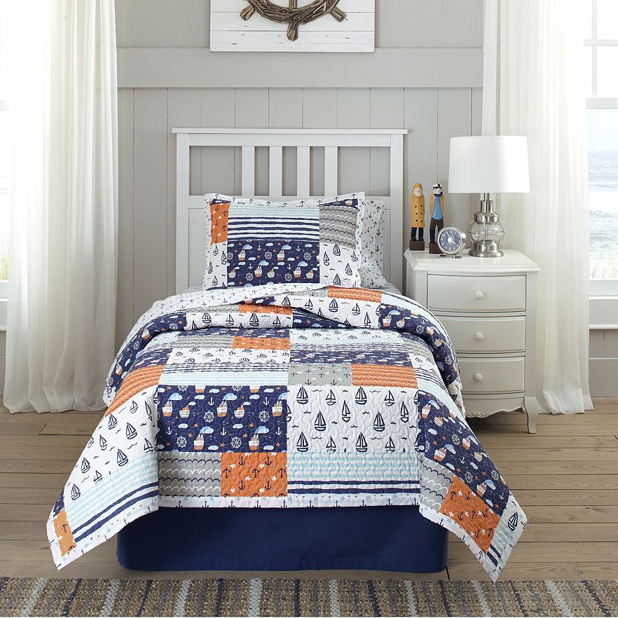 Sail away with this Lullabye Bedding Away At Sea quilt set. In multi.