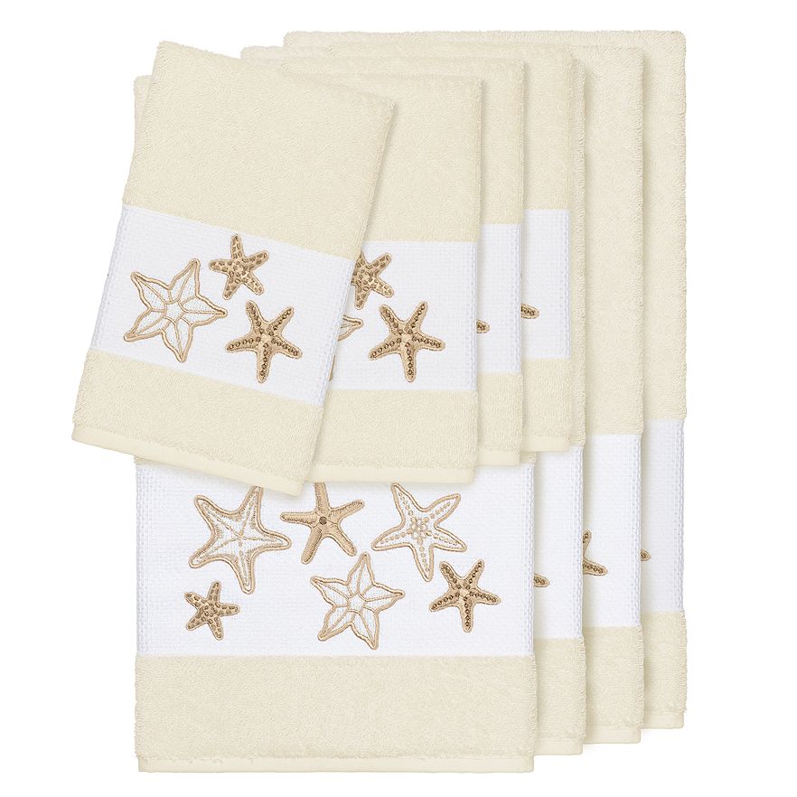 Give your bathroom a beachy makeover with this Linum Home Textiles Lydia embellished hand towel set.