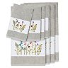 - Features an intricate wildflower embroidery motif on a textured woven border