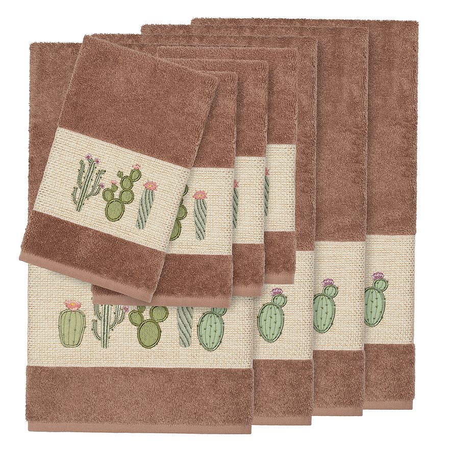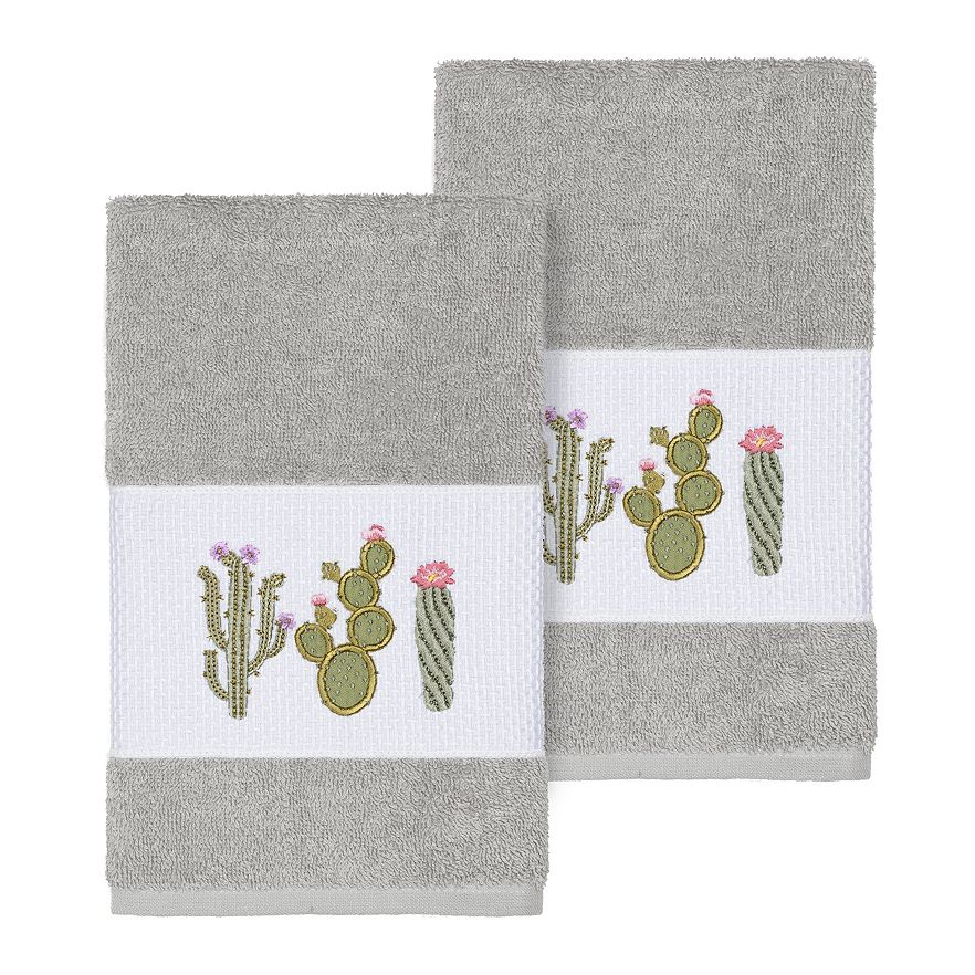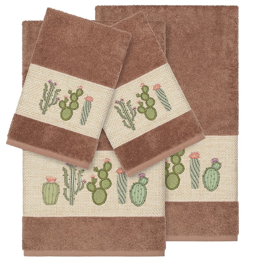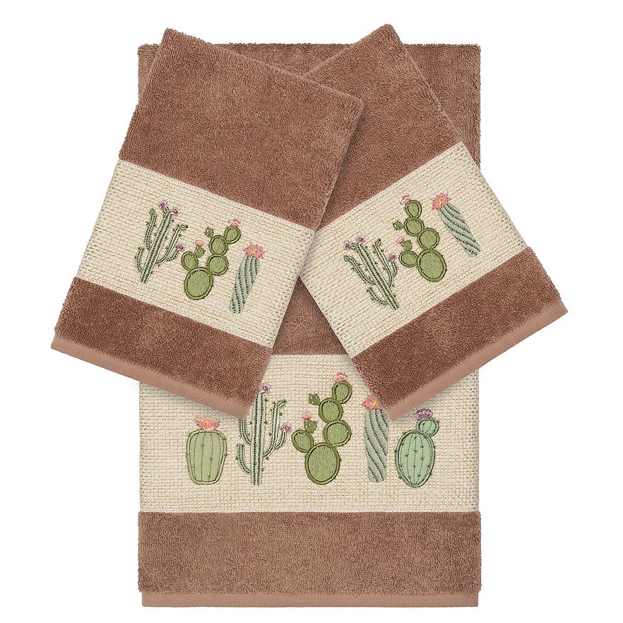 - Features whimsical blooming cactus in applique embroidery on a woven textured border