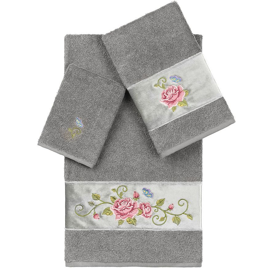 Refresh your bathroom towel collection with these embellished bath towels from Linum Home Textiles, featuring a quick drying Turkish cotton design.