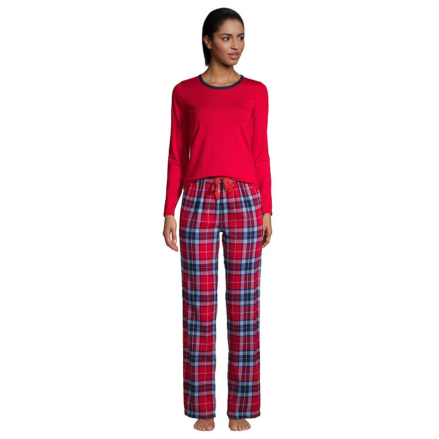 This women's Lands' End sleep set is not only comfortable, but pretty dreamy. The lush cotton knit top has a bit of stretch for easy movement and stays comfortable in and out of bed. The cuddly flannel pants can't get any cozier. A pampering gift for yourself or anyone you know who deserves the softest relaxation.