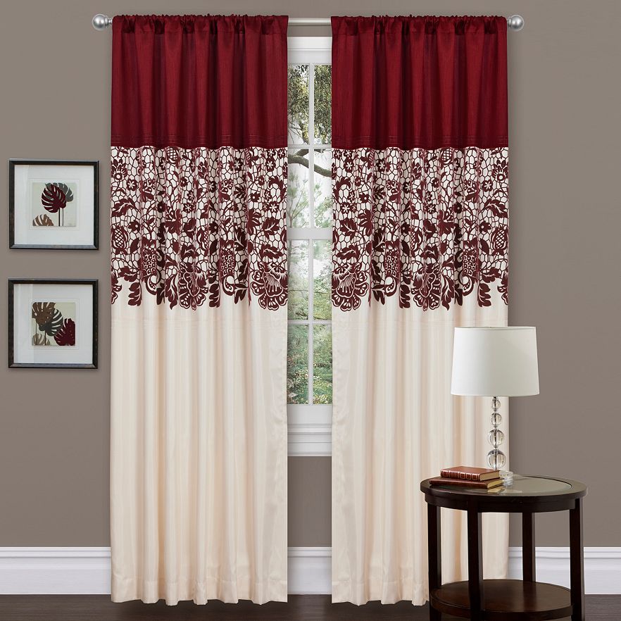 Lush Decor drapery is the last word in luxury. Floral flocking and embroidery adorn this silky panel for a chic look. Up the elegance of your bedroom with this Estate Garden window treatment. In red.