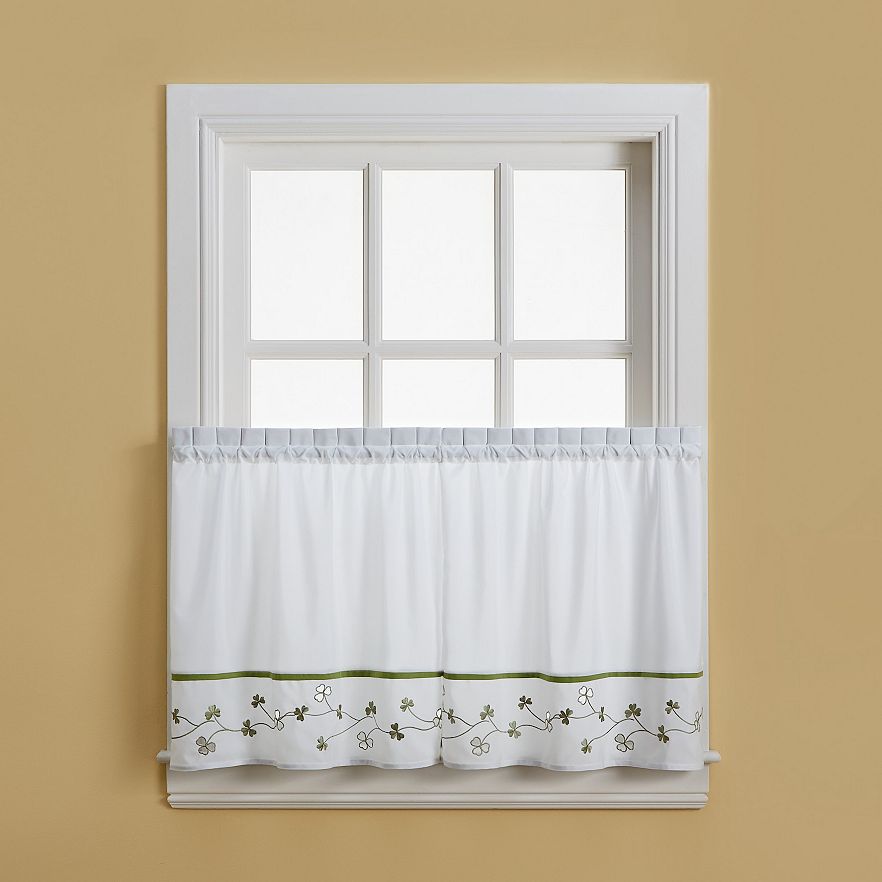 The clover borders feature embroidery and cutout accents for enchanting style. To top off this delightful look, shop our full selection of CHF window treatments at Kohls.com. In white/green.
