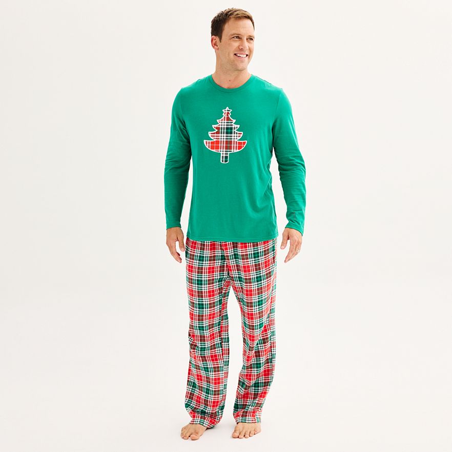Celebrate the spirit of togetherness with this Men's Jammies For Your Families® Merry & Bright Tree Flannel Open Hem Top & Bottom Pajama Set.