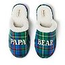 Slip into comfort with these Dearfoams Papa Bear men's plaid scuff slippers.