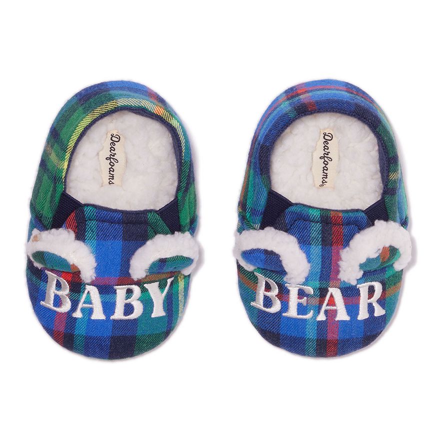 Slip into comfort with these Dearfoams Baby Bear plaid closed back slippers.
