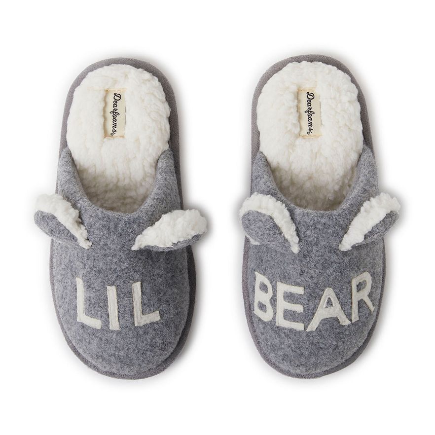 Slip into comfort with these Dearfoams Casey Lil Bear kid's Family scuff slippers.