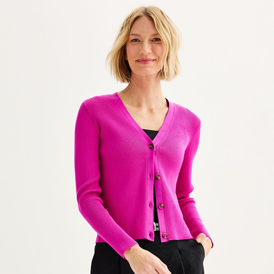 Refresh your wardrobe with this women's Nine West rib knit cardigan.