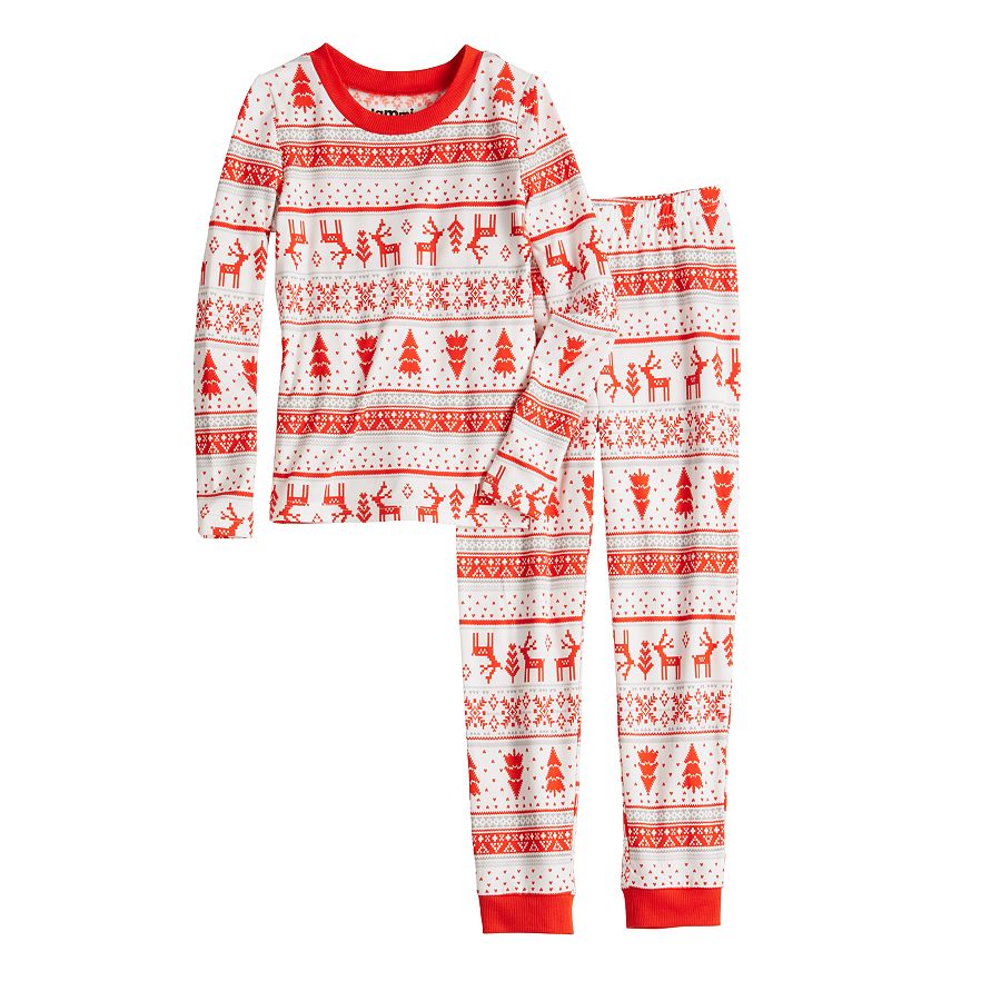 Your candy cane crew will look sweet dressed in the festive fairisle of these Jammies For Your Families family pajamas.