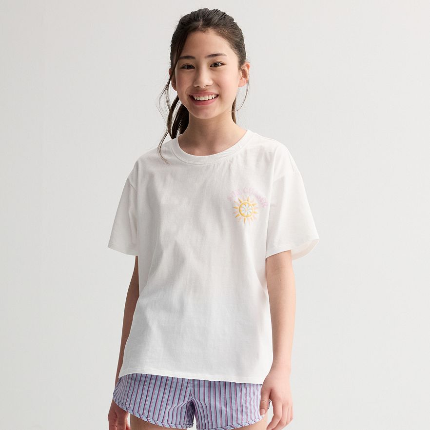 You'll love the charming style of this girls' eyeshadow Oversized Graphic Tee.