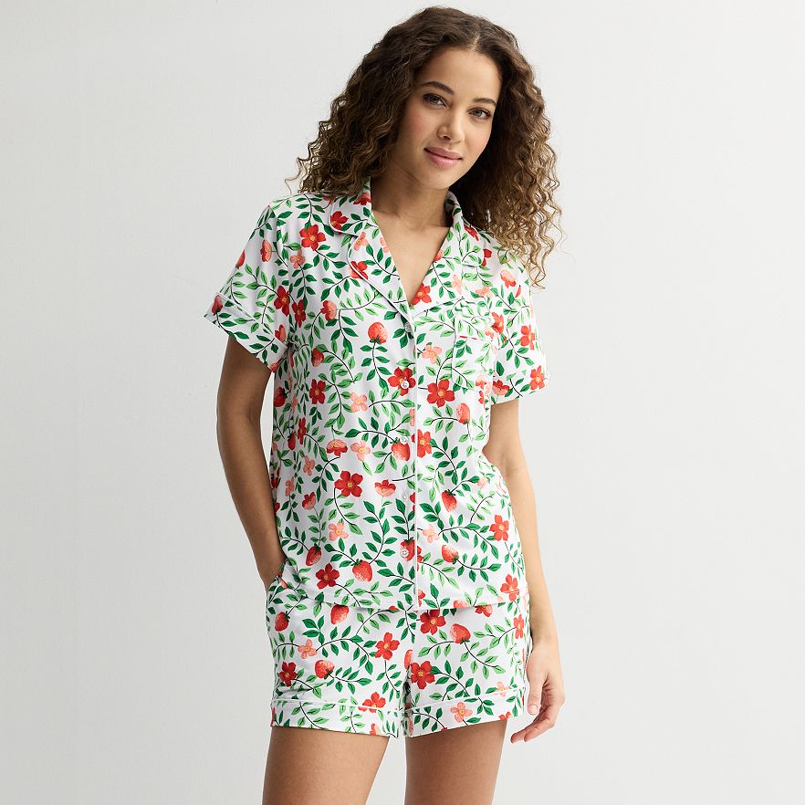 You'll sleep comfortably in this women's Draper James 2-piece short sleeve notch pajama top & pajama shorts set.